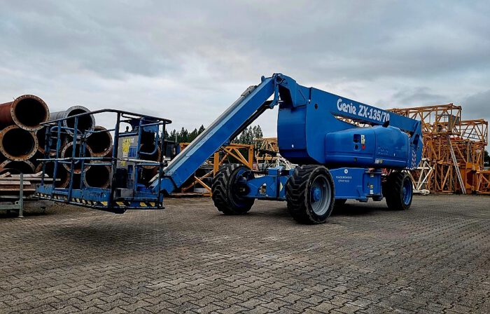 Genie Z135-70 Articulated boomlift Year 2014 Working height 43m Working hours 3.715 Deutz diesel engine Lifting cap. on platform 272 kg 360 degrees rotation Foam filled tyres 4 WD CE marked